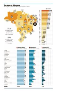 Informações fiscais e contábeis: Para Tesouro, Sergipe é Estado com dados mais consistentes Sergipe, Espírito Santo, Rondônia, Pernambuco e Tocantins estão entre os Estados com melhor classificação no ranking em que a Secretaria do Tesouro Nacional (STN) mediu a consistência das informações contábeis e fiscais das 27 unidades da federação. O último colocado foi Roraima, precedido por Rio Grande do Norte, Amapá, Acre e São Paulo. Pela pontuação usada para classificar os Estados, Sergipe, em primeiro lugar, ficou com 180,88 pontos. Roraima ficou com 105,68 pontos. A média dos Estados foi de 150 pontos.