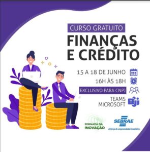 De hoje até o dia 18: curso gratuito de finanças e crédito Uma boa gestão financeira evita prejuízos e permite que o empreendedor tome decisões mais seguras, gerando resultados financeiros positivos no seu negócio. Em tempos de crise, a análise e o controle das finanças, tornam-se ainda mais fundamentais. Participe do curso gratuito “Finanças e Crédito” e saiba como você pode reestruturar as finanças de sua empresa. Inscreva-se já na loja virtual: https://lojavirtual.se.sebrae.com.br/loja/
