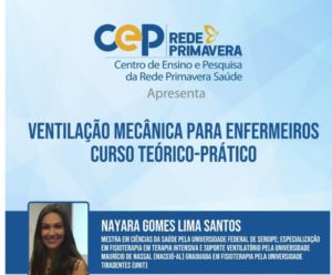 Curso “Ventilação mecânica” Estão abertas as inscrições para o curso teórico-prático “Ventilação Mecânica”, para Enfermeiros, Auxiliares e Técnicos em Enfermagem, que acontece no próximo sábado, dia 21, no Auditório do Hospital Primavera. Maiores informações através dos números: 2105-2506// 9 9653-0843.