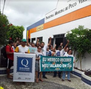 Poço Verde: servidores realizam ato para cobrar salário de agosto e 13º proporcional Ontem,16, pela manhã, servidores da Prefeitura Municipal de Poço Verde fizeram um ato no prédio administrativo para cobrar do prefeito Igor Oliveira os salários de agosto (a maioria ainda não recebeu), como também o décimo décimo terceiro proporcional que está atrasado desde maio 2019.E a única explicação que o prefeito deu foi na rede social escrever que o FPM do dia 10/09 ficou “zero”.