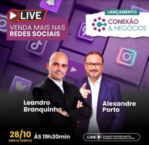 É hoje, 28/10, a partir das 19h30! Chegou a hora de você conhecer todos os detalhes desse grande projeto: CONEXÃO & NEGÓCIOS – muito networking, informação, conteúdos relevantes, troca de experiência e muita, muita geração de OPORTUNIDADES. Hoje, 28, às 19h30, acontecerá uma super live, com Alexandre Porto ao lado do grande especialista em vendas e negócios digitais Leandro Branquinho. Uma grande oportunidade pra você aprender algumas técnicas de vendas para redes sociais.