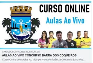 Vivo, em tempo real, por videoconferência, para o Concurso da Barra dos Coqueiros. Reunimos os melhores professores do Brasil e de Sergipe para você fechar todas as 30 questões de Conhecimentos Básicos da banca Cespe/Cebraspe. Na compra deste curso Ao Vivo, você ganha grátis o Curso Online com Videoaulas, Audioaulas, Apostila e Slides. Início: 17/08/2020. Término: 30/10/2020. Horário: das 19h às 21h. Vagas: apenas 100 alunos. Local: Videoconferência. Investimento: R$ 350,00 à vista ou R$ 400,00 em todos os cartões dividido em até 12 vezes. Equipe de Professores: Sidney Martins (Lingua Portuguesa); Jhoni Zini (Raciocínio Lógico); Rafael Almeida (Estatuto dos Servidores); Izabela Oliveira (Lei Orgânica);- Bareta (Geografia) e Thiago Fragata (História). Mais detalhes: http://canaldosconcurseiros.com.br/curso/aulas-ao-vivo-concurso-barra-dos-coqueiros/