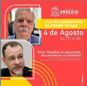 Live hoje, 04/08, às 17h “Desafios da Capacitação dos Servidores na Pandemia” Hoje, 04, live da Prefeitura de Aracaju, às 17h, com o tema “Desafios da Capacitação dos Servidores na Pandemia.” Participação do superintendente do Sebrae/SE, Paulo Eirado e o Coordenador Geral do Planejamento Estratégico da PMA, Júlio Figueira. Aqui: https://www.instagram.com/prefaracaju/