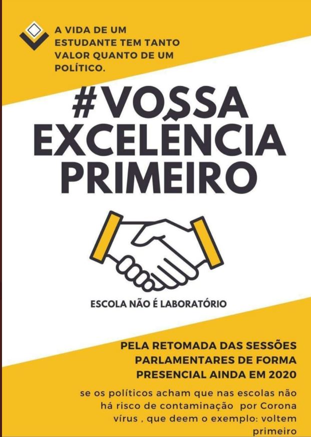 De um Pai preocupado com decisões econômicas da economia sobre a educação “”O Estado de Sergipe jamais fez fiscalização alguma para o isolamento social e distanciamento. Com isso, contribuiu para o número de mortes e contaminados. O estado comportar-se como se a pandemia fosse uma praga de gafanhoto que desparece quando o seu maior inimigo aparece – o tempo. O retorno as aulas é um ato irresponsável que irá expor toda uma cadeia educacional, quebrando todo um esforço daqueles que obedeceram às regras, recomendações da OMS. Nenhuma escola está preparada para fiscalizar aos seus filhos quando toca em objetos que não são os seus pertences, ou de forma inconsciente coloca as mãos na máscara, coça aos olhos. A abertura das escolas proposto pelo governo do estado atende a quem? Aos donos de escolas? Quem fiscalizará as escolas públicas? Essas mal têm água para higienizar as mãos. Quiçá todo um procedimento exigido pela OMS. Mas o senhor donatário já disse que ” Vida que segue” a dele, menos ao do meu filho que continuará seguro, pois a vida não tem preço.”