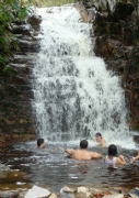 caminhada. A cachoeira Grande ou Três Cachoeiras é uma das primeiras atrações do percurso. Considerada a mais alta e maior desta trilha, enche os olhos dos aventureiros.