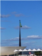 A Bandeira Nacional estará permanentemente no topo de um mastro especial plantado na Praça dos Três Poderes de Brasília, no Distrito Federal, como símbolo perene da Pátria e sob a guarda do povo brasileiro. Legenda