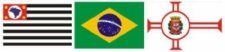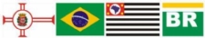 5- Com a bandeira do Estado, Município e empresa: Nacional no centro direito, Estado à esquerda da nacional, (dividindo o centro), e a do Município à direita e empresa à esquerda, ao lado da bandeira do Estado.