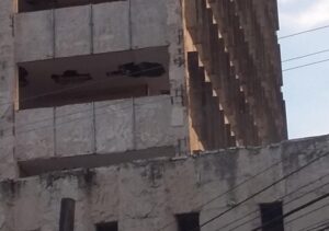 Para completar, o edifício não conta mais com revestimento e janelas em sua parte externa, o que acelera o processo de infiltração de água das chuvas, corrosão e desgaste da estrutura de sustentação.