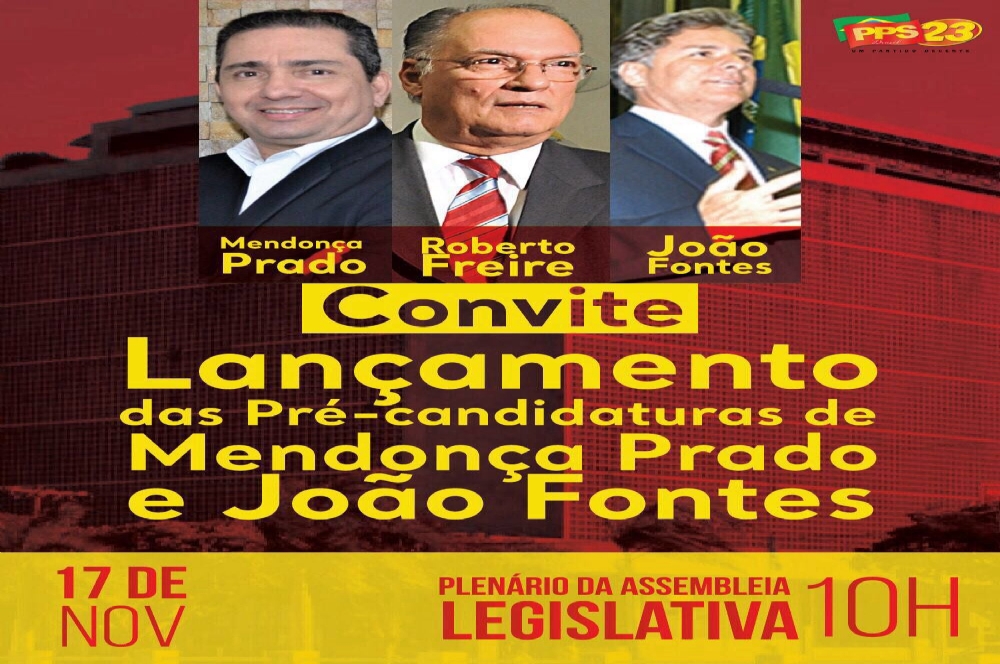 Lançamento pré-candidaturas Com a presença do presidente nacional do PPS, Roberto Freire, hoje, 17, a partir das 10hs no plenário da Assembleia Legislativa de Sergipe serão lançadas as pré-candidaturas dos ex-deputados federais, Mendonça Prado para o governo de Sergipe e João Fontes para uma das duas vagas do Senado Federal que estarão em disputa em 2018.