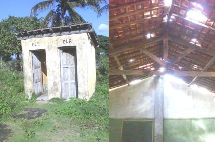 membro da Executiva Estadual do PPS em Sergipe (Ufa! Quase não acaba), Marcos Aurélio: “Assisti as duas entrevistas, tanto a de Déda, quanto a de João. Também parabenizo os jornalistas da TV Sergipe pela qualidade das perguntas. Objetivas e de impacto jornalístico. Se João teve que responder sobre o seu nome na “Operação Navalha”, e concordo que poderia ter sido mais objetivo; Déda também teve que responder sobre a “Micareta Picareta” e a mudança no semblante dele, para quem o conhece sabe que esse é um assunto que lhe tira do eixo e esconde o sorriso largo, quase cinematográfico, usado durante as campanhas eleitorais.Cláudio, Quando a sociedade sergipana tomou conhecimento da nota atribuída a Educação estadual em nosso Estado, como acontece em todo o Brasil, segundo afirmação do Senador Cristóvão Buarque, não ficou assustada, ou caiu em lamentação na mesma proporção de quando fomos eliminados da Copa do Mundo. É “natural”, afinal somos o País do futebol. O bom mesmo seria se fossemos o País da “Educação”, mas isso é uma longa estrada. Veja o retrato de uma escola da rede pública estadual, localizada no povoado Zanguê, no município de Itabaiana. Depois de verem as fotos, gostariam que os seus leitores opinassem sobre o assunto”. Banheiro e o teto da sala de aula. (Foto enviada por Marcos Aurélio).