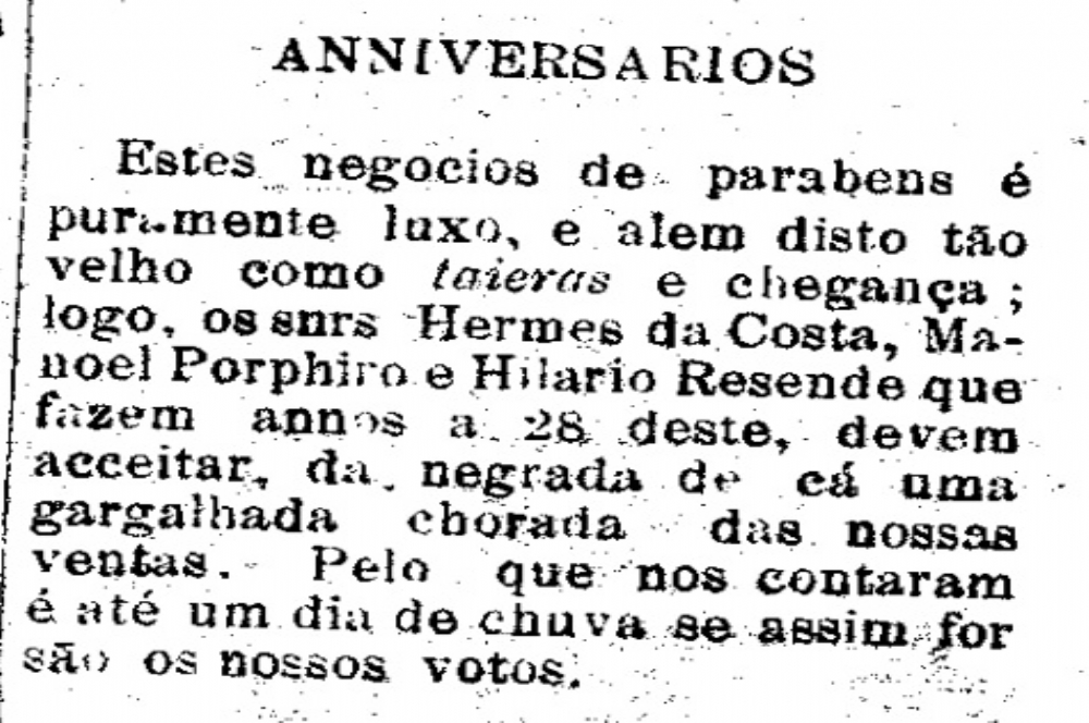 Publicado no jornal aracajuano O Riso, em 26 de agosto de 1906 |
