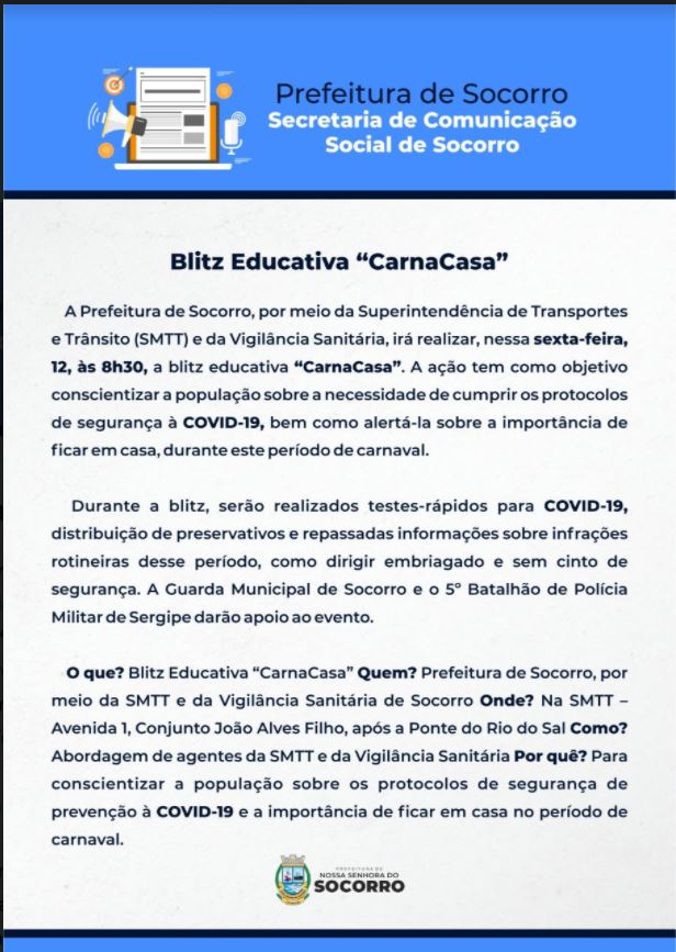 O Governador Belivaldo Chagas, quando questionado sobre a suspensão de ponto facultativo no carnaval, disse: “Não tem sentido que 16 Estados brasileiros suspendam os pontos facultativos durante o Carnaval e Sergipe não o faça. Por que isso? A quem isso serviria? Vou suspender e determinar fiscalização rígida. É pela vida”.