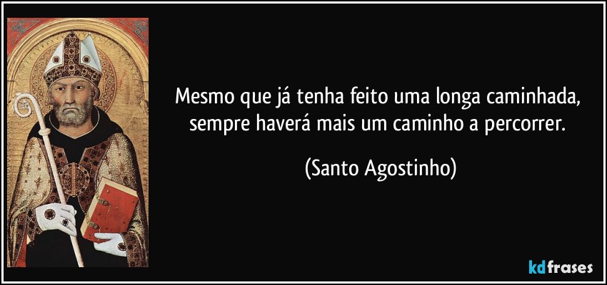 “Mesmo que já tenha feito uma longa caminhada, sempre haverá mais um caminho a percorrer.” Santo Agostinho.