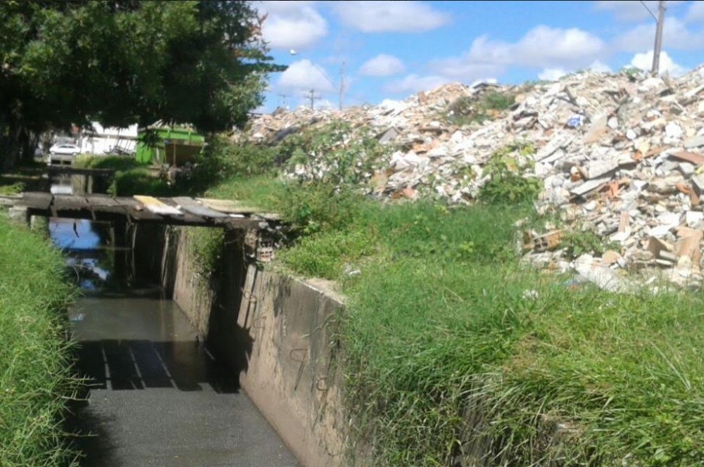 Atenção Emsurb. “Montanha” de entulho ao lado do canal do conjunto Lourival Batista