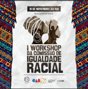 I Workshop da Comissão de Igualdade Racial OAB/SE Nesta quarta-feira, 18, às 14 horas, a OAB/SE realiza o I Workshop da Comissão de Igualdade Racial. O evento acontecerá no plenário da entidade, localizado na Av. Ivo do Prado, 1072, e contará com as explanações de Kleidson Nascimento, Gigi Poetisa, Lucicleide Ribeiro e Iya Sônia. A abertura solene será realizada pelo presidente da OAB/SE, Inácio Krauss, e a presidente da Comissão de Igualdade Racial da Seccional, Monalisa Djean. Os temas que serão abordados nas palestras serão: negros em espaço de poder, poesia, racismo institucional e religiosidade. As atividades culturais ficarão por conta de Sara Miranda, com oficina de turbantes; Rebeca Lopes, com oficina de maquiagem; Allan D’Xangô, expositor; e Alex Wanderson, capoeirista. O evento é presencial e aberto ao público. Participe!