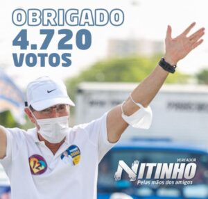 Agradecimento Nitinho Mensagem pelas redes sociais: “Meus amigos mais uma vez manifestaram suas vontades livres e depositaram 4.720 votos de reconhecimento e confiança no trabalho que venho desenvolvendo ao longo da minha vida pública Tenho uma relação de confiança mútua e um compromisso de lealdade com cada cidadão. Meu coração não comporta tanta felicidade e gratidão. Atribuo este resultado à confiança e ao trabalho dos amigos, que envolveu dedicação diária na busca de mais uma vitória!’’