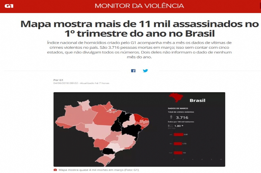 Insegurança Pública “Salve-se quem puder”, é o lema da segurança, ou melhor, da insegurança pública do pior governo da história de Sergipe: Jackson-Belivaldo-Jackson. Para piorar a situação, o G1 da Globo divulgou ontem, um levantamento de uma pesquisa sobre homicídios no Brasil. E Sergipe aparecer numa péssima colocação de insegurança. De fato, o legado do desastroso governo da história de Sergipe deixará profundas “marcas de tiro” no cidadão. O link da matéria de ontem do G1:https://g1.globo.com/monitor-da-violencia/noticia/mapa-mostra-mais-de-11-mil-assassinados-no-1-trimestre-do-ano-no-brasil.ghtml