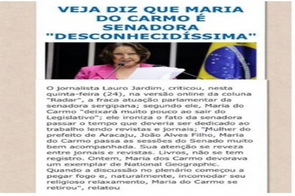 Veja diz que Maria do Carmo é senadora “desconhecidíssima” Por Edson Júnior*