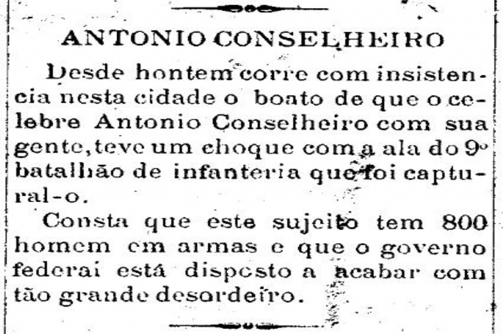 Publicado no jornal aracajuano A Notícia em 24 de novembro de 1896 Resumo de Jornais |