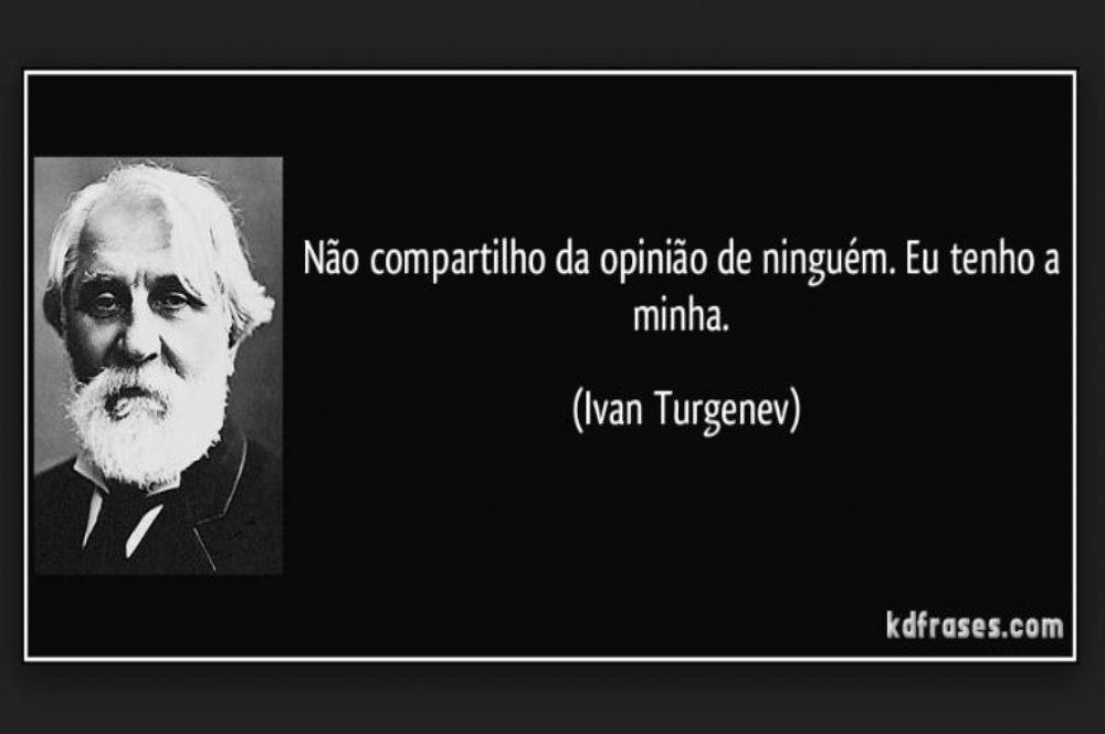 “Não compartilho da opinião de ninguém. Eu tenho a minha.” Ivan Turgueniev.