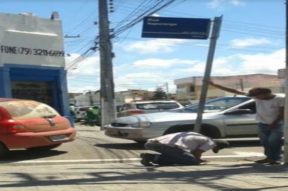 ruas. Basta soltar algo que troca-se toda. Na foto ao lado, enviada por um leitor, o ferro da placa de identificação (ruas de Itaporanga com Siriri) estava apenas empenado, porém, pelo trabalho que deu a equipe estava sendo totalmente arrancada, quando deveria ser consertada com uma simples solda.