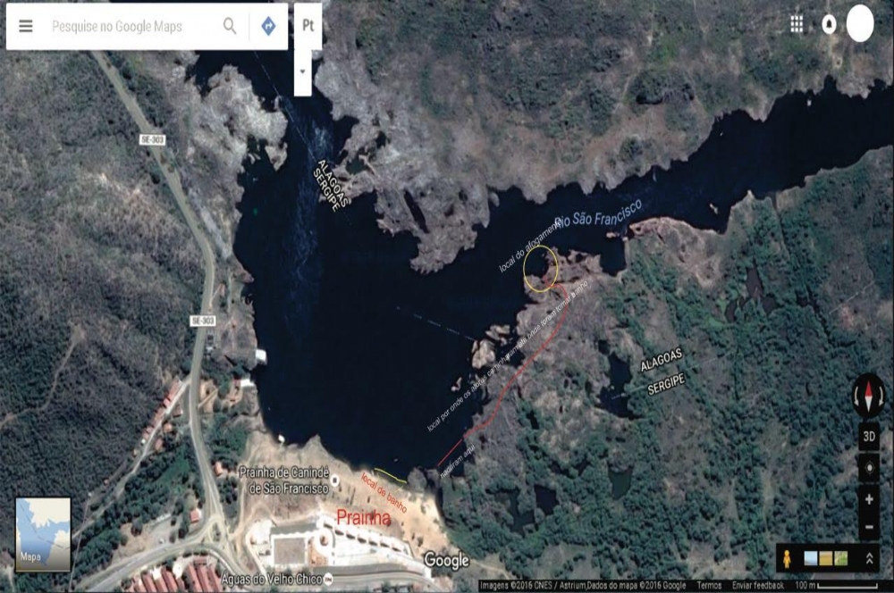 O mapa ao lado (retirado do google maps), mostra claramente que o afogamento do ator Domingos Montagner não foi na prainha do rio São