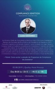 Aracaju: na próxima sexta-feira, 02, Compliance Ignition Acontecerá em Aracaju o Compliance Ignition, no dia 2 de agosto de 2019, no Hotel Quality, das 8h30 às 12h15 e das 14h15 às 18h. Com realização da REVISTA ADVOGADOS, o evento, que se destina a discutir, debater e disseminar o tema “Compliance” e regras de governança pública e corporativa, terá a participação de renomados especialistas.