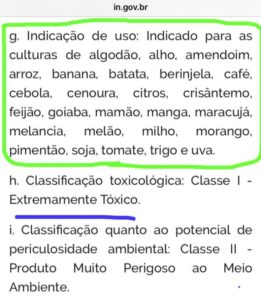 Já ouviu falar em Lousal? Um dos 170 agrotóxicos liberados no Brasil em 2019. Classificação pelo Ministério de Agricultura: ‘Extremamente tóxico’.