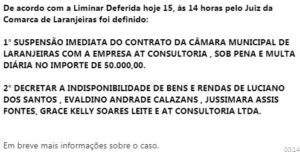 Público do Estado de Sergipe (MPE), pediu o afastamento imediato do presidente da Câmara Municipal de Laranjeiras, vereador Luciano dos Santos, além do ressarcimento integral no montante de R$ 198.000,00.