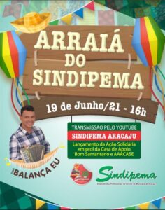 SINDIPEMA realiza São João solidário Embalados pelo clima festivo do mês junino, mas com muita responsabilidade e respeito aos protocolos sanitários em decorrência da pandemia, o Sindicato dos Profissionais do Ensino do Município de Aracaju – SINDIPEMA, realiza a Live “São João Solidário”. O evento será transmitido pelo Youtube SINDIPEMA ARACAJU, no dia 19 de junho, a partir das 16h. O grupo de forró “Balança Eu”, atração do dia, promete alegrar os espectadores com muita música, que transmita alegria, saudade de quem estamos longe e muito amor. Prepare sua roupa junina, o milho, o amendoim e vamos ariar a fivela.