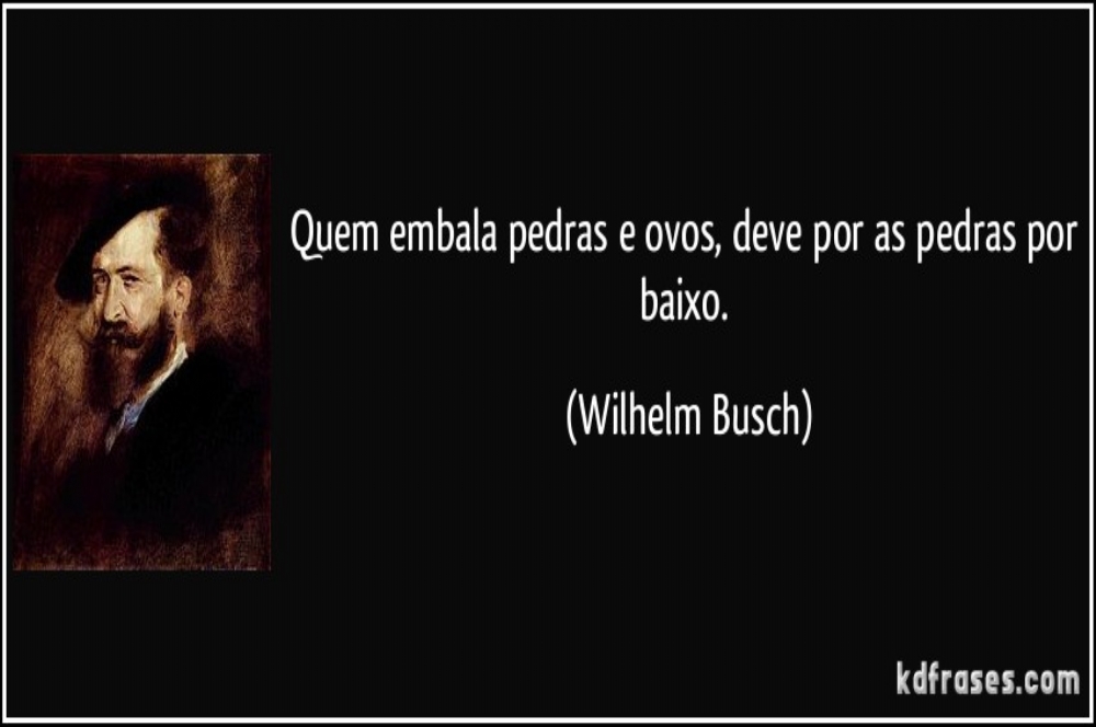“Quem embala pedras e ovos, deve por as pedras por baixo.” Wilhelm Busch, escritor e cartunista alemão, morreu em 09 de Janeiro de 1908 (n. 1832).