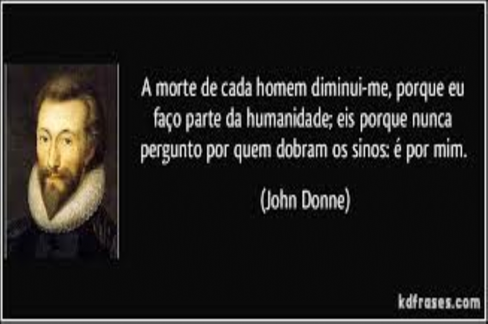 E mais: “A morte de cada homem diminui-me, porque eu faço parte da humanidade; eis porque nunca pergunto por quem os sinos dobram: é por mim.”