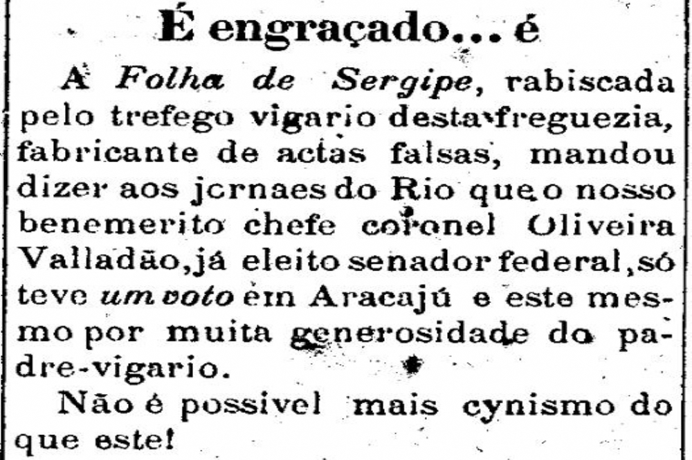 Publicado no jornal aracajuano A Notícia, em 2 de janeiro de 1897 Resumo dos jornais |