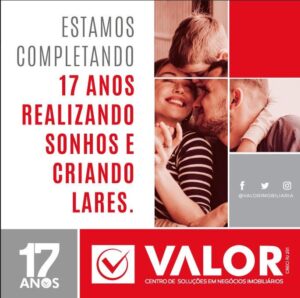referência em soluções e negócios imobiliários E o blog abre espaço para homenagear os 17 anos da Valor Imobiliária, que se consolidou em Sergipe como um centro de soluções e negócios imobiliários, pela segurança e experiência pautados na seriedade dos seus dirigentes. Por conta da pandemia, os dirigentes não realizarão uma festa para comemorar o feito, mas preparam um vídeo institucional que resume todos os valores da empresa. A Valor hoje é uma empresa privada, mas é como se fosse de utilidade pública por serve de referência e segurança em vendas, aluguéis, consultoria e avaliação. São mais de mil ligações e cerca de 100 atendimentos diários,, comprovando o reconhecimento da empresa, que nestes 17 anos recebeu diversas premiações. O blog parabeniza toda equipe e Aroldo Franca, o idealizador deste emprega sergipana vitoriosa.
