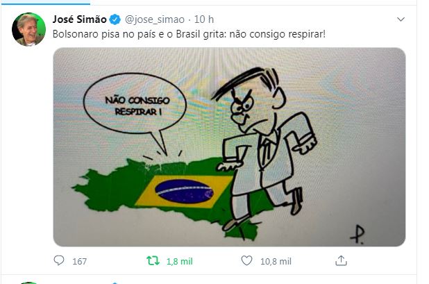 www.twitter.com/jose_simao Bolsonaro pisa no país e o Brasil grita: não consigo respirar!