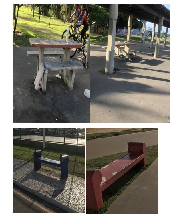Em quase todos os cantos os bancos da orla estão em péssimas condições. Alguns quebrados, outros sem encostos. Pelo jeito, a Prefeitura deve pedir aos terapeutas para usarem como divã. Brincadeira à parte, a situação é vergonhosa num local que é vendido como o principal cartão postal de Aracaju.