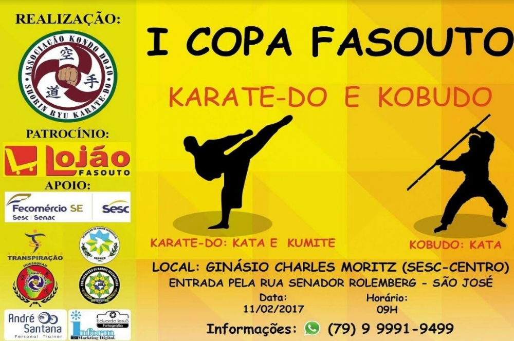 No sábado, 11, será realizada a I Copa Fasouto Karate-Do e Kobudo no ginásio Charles Moritz (Sesc/Centro) com a participação de todos os