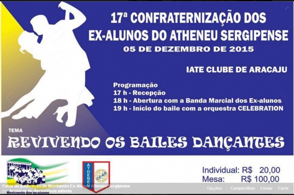 E a 7ª Confraternização dos Ex-Alunos do Atheneu Sergipense, que será realizada amanhã, 05, a partir das 17h, no Iate Clube de