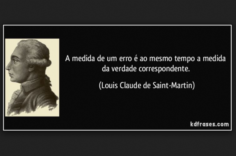 “A medida de um erro é ao mesmo tempo a medida da verdade correspondente.”Louis Claude de Saint-Martin, filósofo e místico francês, morreu em 13 de Outubro de 1803 (n. 1743).