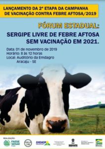 Sergipe se prepara para se tornar área livre da febre aftosa sem vacinação em 2021 O Estado está se preparando para que em 2021 Sergipe atinja o status de área livre da febre aftosa sem vacinação, o qual faz parte do Plano Nacional de Erradicação da Febre Aftosa. Mas, para isso, é necessário que esse ano e o no próximo, quando da realização das campanhas de vacinação contra a febre aftosa, tenhamos atingido 100% de vacinação de todo o bovino e bubalino do estado. Esses índices serão importantíssimos para que tenhamos sucesso na erradicação da doença em Sergipe.