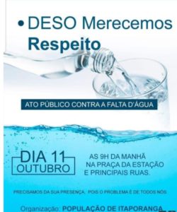 Itaporanga D`Ajuda: população fará ato contra a falta de água. De alguns oradores:“Itaporanga sofrendo com a falta de água, eu não sei se é um boicote desse governo incompetente para o povo apoiar a privatização ou é falta de respeito mesmo com a população, aqui em Itaporanga o povo não aguenta mais.”