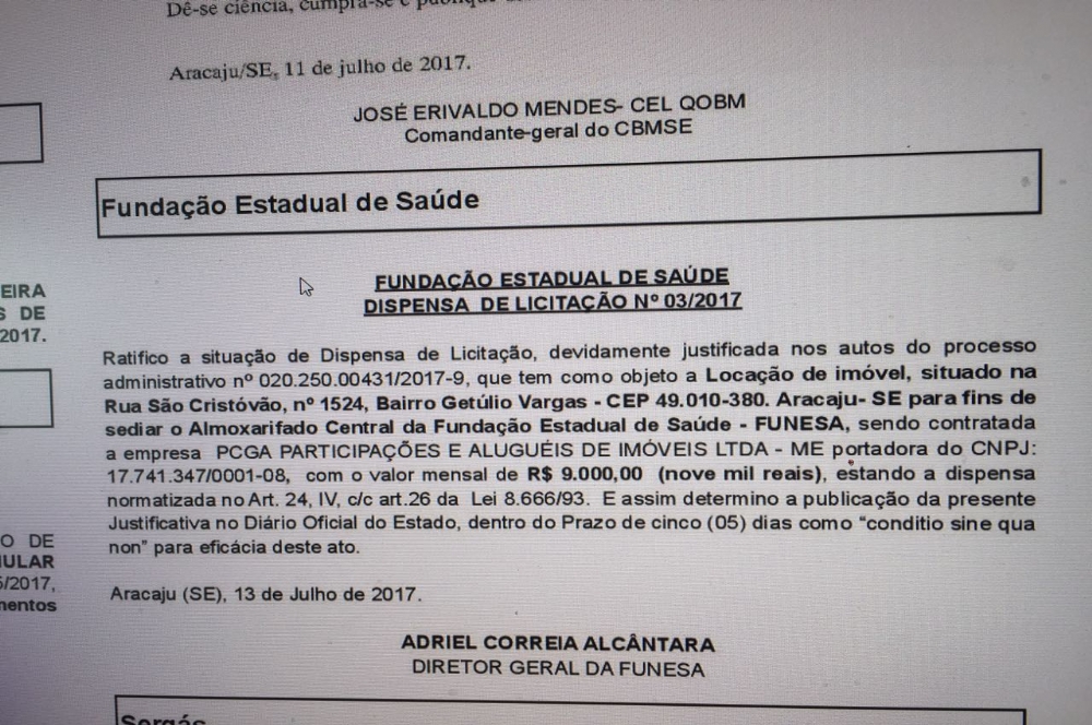 alugando outros imóveis. Veja ao lado o print do aluguel da Fundação Estadual de Saúde renovado no mês passado.