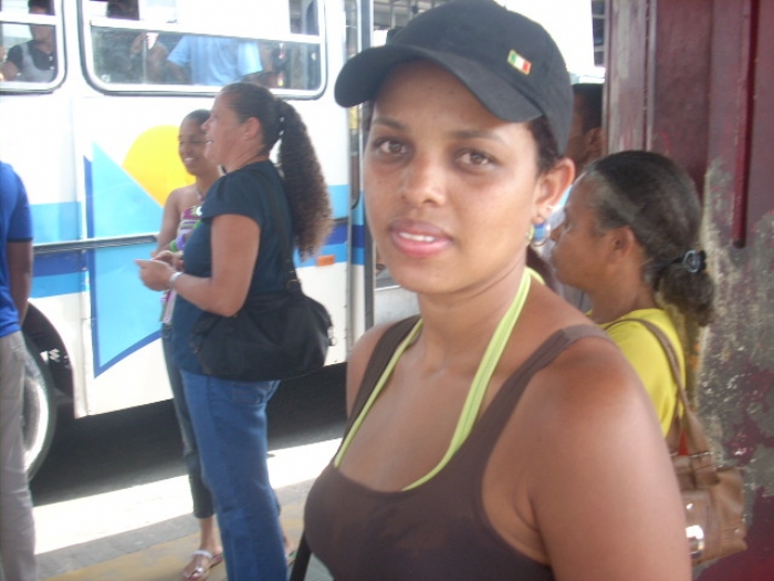 | Marcela Silva conta que está esperando o ônibus há uma hora | Situação semelhante passou a vendedora Tânia dos Santos. Ela relata que ficou esperando o transporte coletivo meia hora. “É um absurdo essa demora. Dia de domingo era para eu estar em casa descansado, mas não, estou aqui no terminal há meia hora esperando o ônibus”, desabafa.