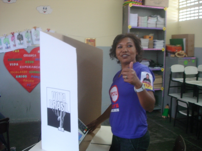 | A candidata do PSTU votou na Olimpia Bittencourt, no Santos Dumont |