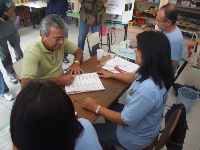 Acompanhado da esposa e da garota Bianca, símbolo de sua campanha, o candidato Almeida Lima (PMDB) chegou ao Escola Parque de Sergipe, no bairro Grageru, confiante. “Eu vou ganhar em primeiro turno”, respondeu ao ser questionado sobre suas expectativas.