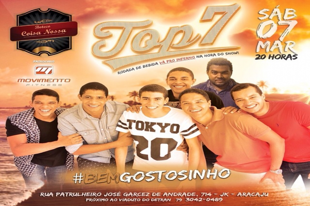 A primeira roda de samba do grupo Top 7 acontece neste sábado, 7, a partir das 20h, no Boteco Coisa Nossa, localizado na avenida Patrulheiro José Garcez de Andrade, nº 714, JK. O couvert é de apenas r$ 10.