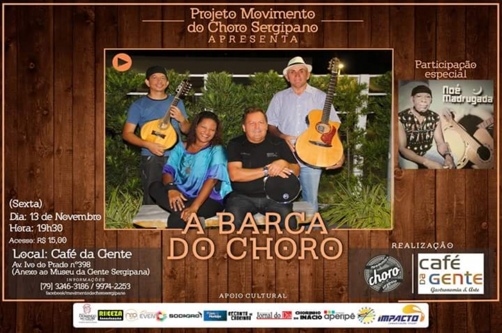 Para fechar as atividades deste ano, a Barca do Choro vai ancorar no Café da Gente Sergipana para uma apresentação especial com participação do sambista Noé da Madrugada.