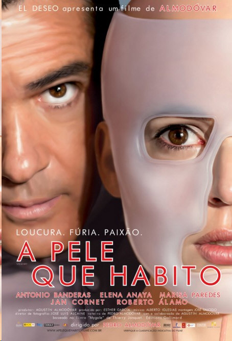 (La Piel que Habito). Espanha, 2011. Direção de Pedro Almodovar. Produção de Agustin Almodovar, Pedro Almdoovar e Toni Novella. Roteiro de Pedro Almodovar, baseado em romance de Thierry Jonquet. .Música de Alberto Iglesias. Montagem de José Salcedo. Desenho de Produção: Antxon Gomez. Direção de Arte: Carlos Bodelon. 120m, 14 anos. Cia. Produtora: El Deseo S. A. Distr. no Brasil: Paris Filmes. Com Antonio Banderas, Elena Anaya, Marisa Paredes, Blanca Suarez, Barbara Lennie, Jan Cornet, Fernando Cavo, Isabel Blanco, Eduard Fernandes, José Luiz Gomez, Susie Sanchez, Roberto Alamaro, Ana Mena, Teresa Manresa, Violaine Esterez.
