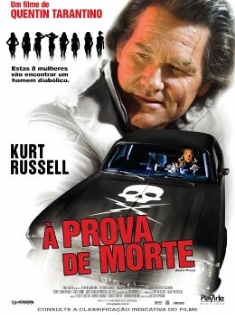 (Death Proof). EUA, 2007. Direção, Direção de Fotografia e Roteiro de Quentin Tarantino. Produção de Elizabeth Avellan, Robert Rodriguez, Erica Steinberg e Tarantino. Edição de Sally Menke. Desenho de Produçlão : Steve Joyner. Direção de Arte: Caylah Eddleblute. 114m, 18 anos. Cia. Produtora: Dimension Films, Troublemaker Studios, The Weinstein Company. Distr. No Brasil: Europa Filmes. Com Kurt Russell, Rosário Dawson, Zoe Bell, Vanessa Ferlito, Sidney Poitier, Rose McGowan, Quentin Tarantino, Michael Parks, Marley Shelton, Jordan Ladd, Tracie Thooms, Mary Elizabeth Winstead, Eli Roth.