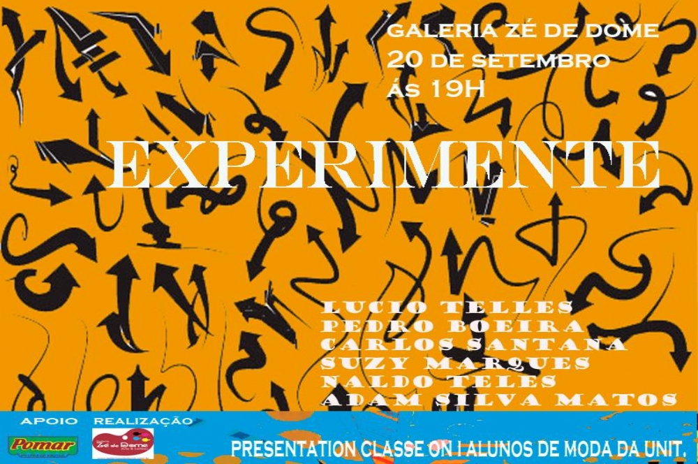 A Galeria de Arte Zé de Dome tem o prazer de receber a sexta edição do Experimente, que a cada mês promove uma nova exposição coletiva com uma ação performática. Os artistas desta edição são: Lucio Telles, Pedro Boeira, Carlos Santana, Suzy Marques, Naldo Teles e Adam Silva Matos que irão apresentar pinturas, ilustrações e fotografias.
